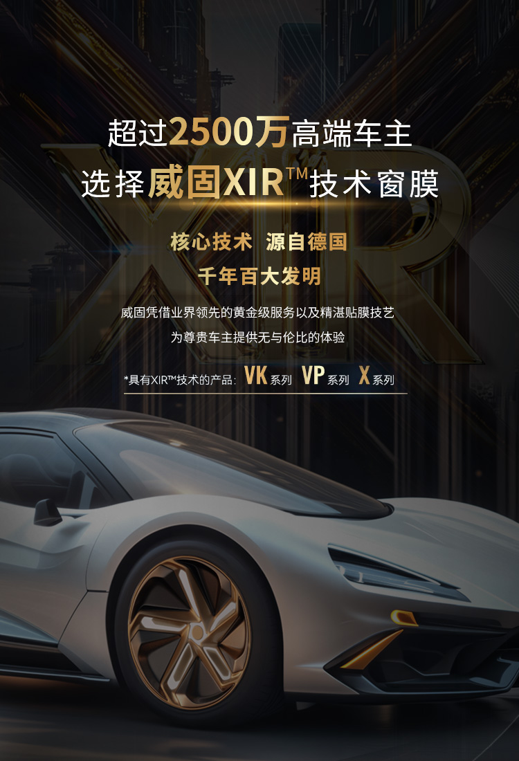 威固汽車(chē)隔熱膜,以其先進(jìn)的“XIR智能光譜選擇技術(shù)”及磁控濺射科技,根植于豪華車(chē)主心中。